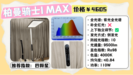 柏曼是一款采用紫光激发的全光谱护眼灯,实际蓝光比较低,在0.6左右,并且整体的光谱连续性看起来比较连续,同时整体的光线舒适度比较高。